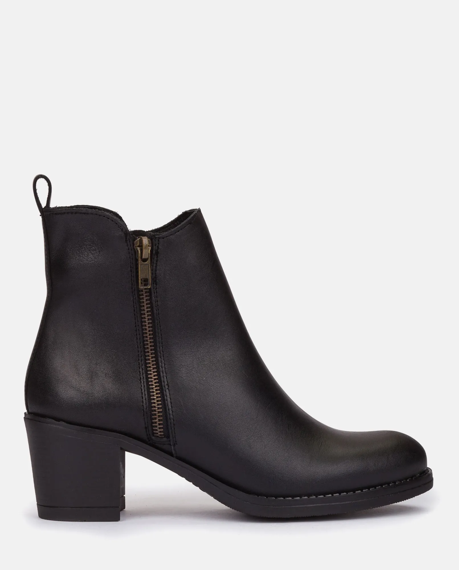 La bottine LILLE 012 en noir et tige en cuir de vachette, talon de 6 cm et design minimaliste avec une fermeture éclair…