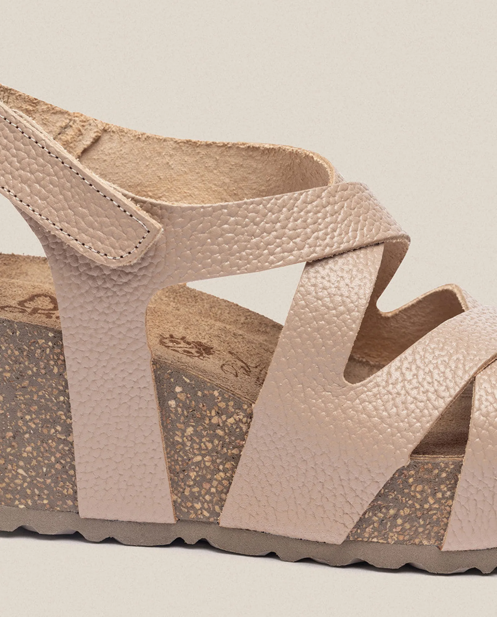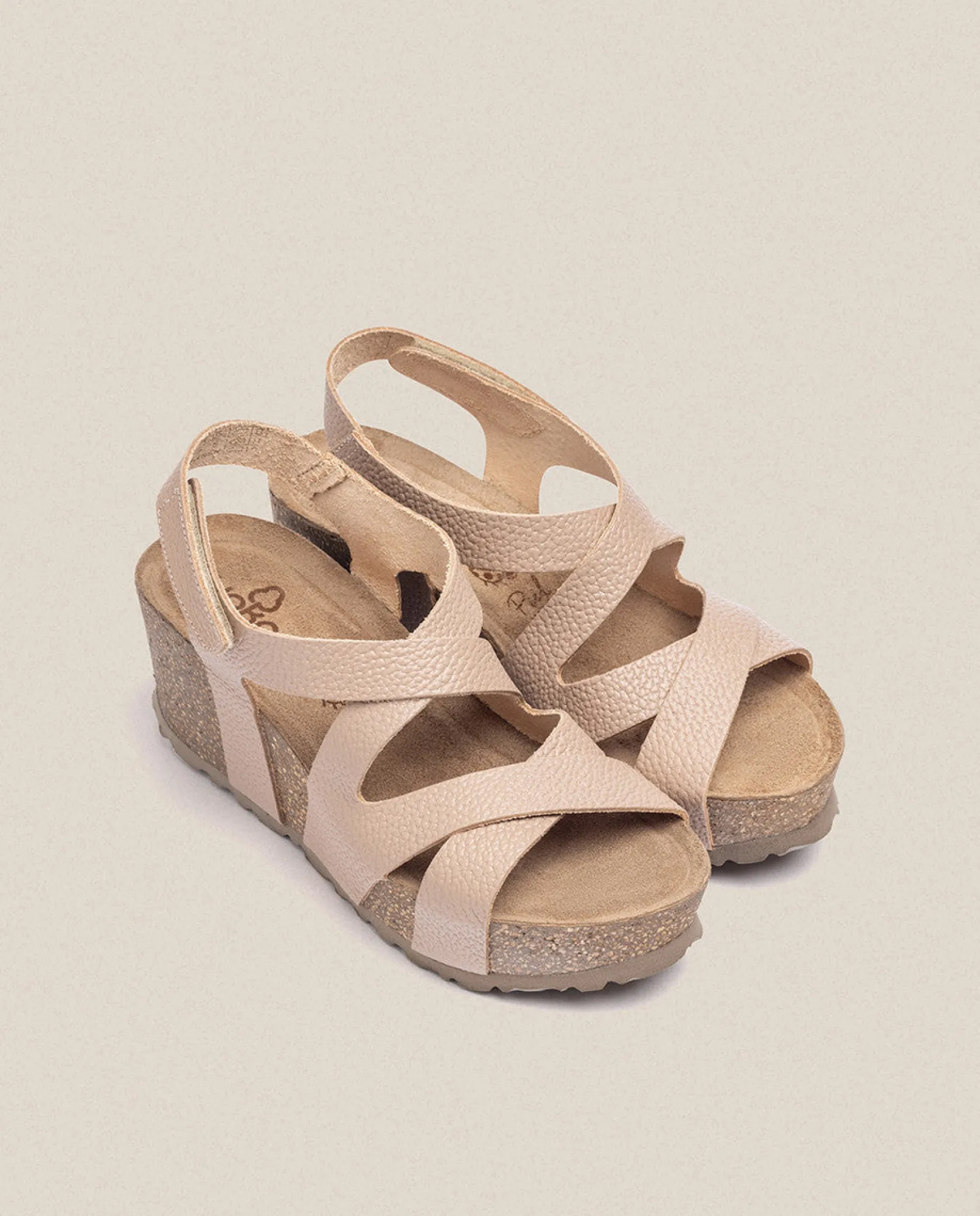 La sandale à semelle compensée BARI 303 en beige, composée de brides entrelacées qui représentent la simplicité et le style en un seul modèle. Il possède une semelle de 5,5 cm et une semelle intérieure matelassée et antidérapante qui garantit l’adhérence du pied. Il est fabriqué à la main en Espagne à l’aide de teintures végétales respectueuses de l’environnement.