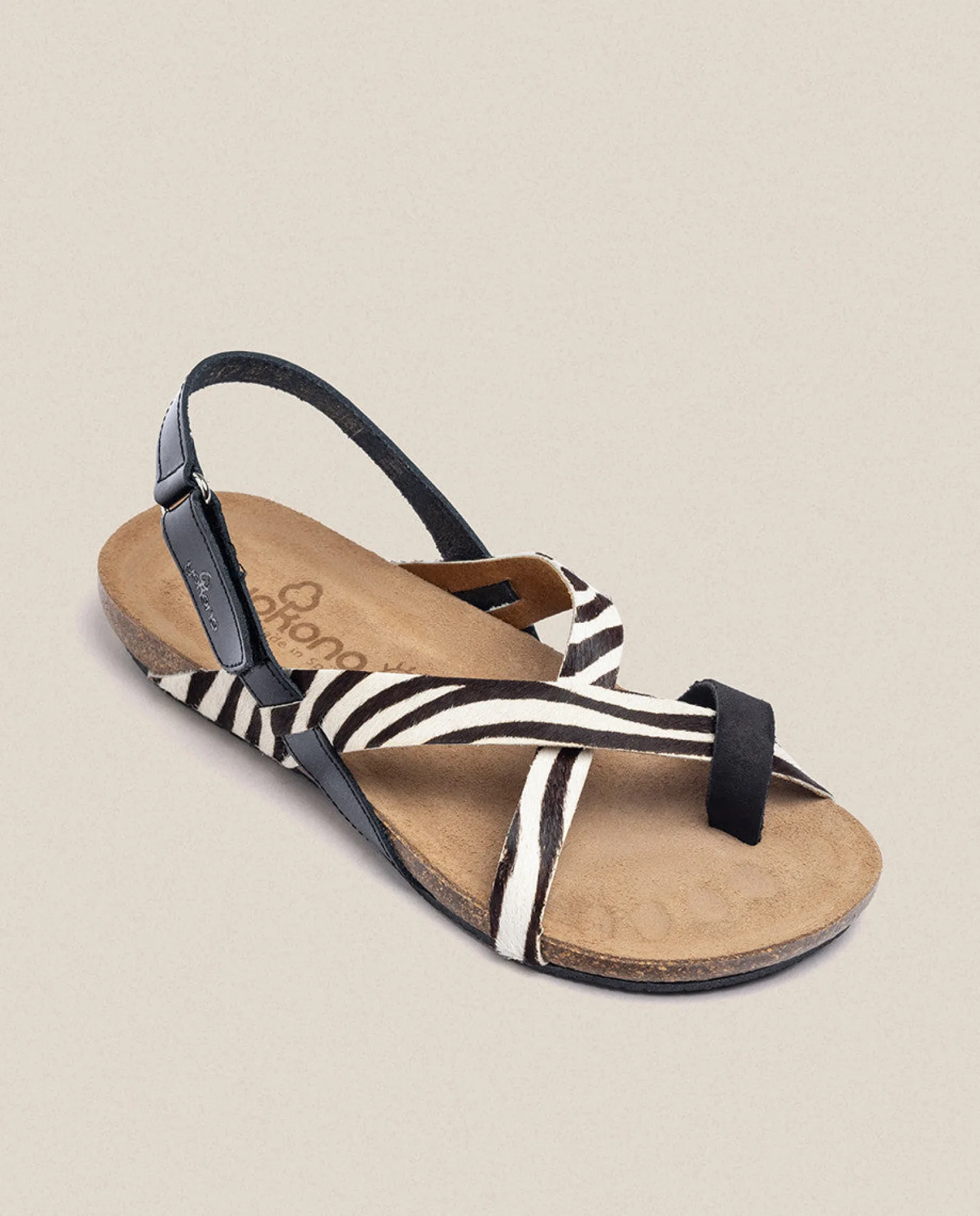 Sandale plate noire d’une hauteur de 2 centimètres. Elle est dotée d’une simple fermeture velcro et de brides en cuir de vachette qui s’entrecroisent sur le cou-de-pied. Le confort sans compromis sur le style, c’est pourquoi il s’agit de notre modèle emblématique. Elle est fabriquée à la main en Espagne, avec du cuir et des teintures végétales respectueuses de l’environnement.